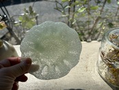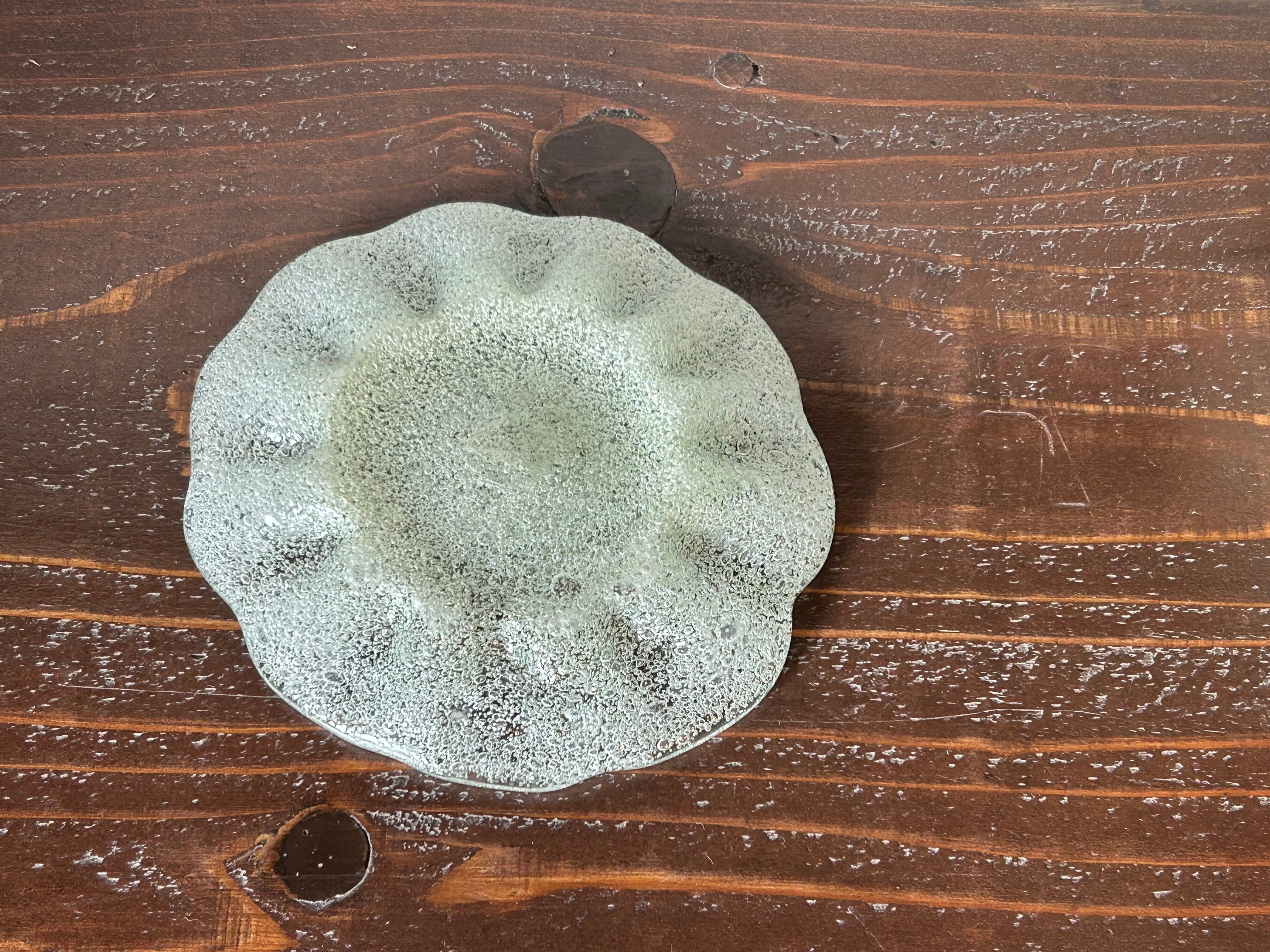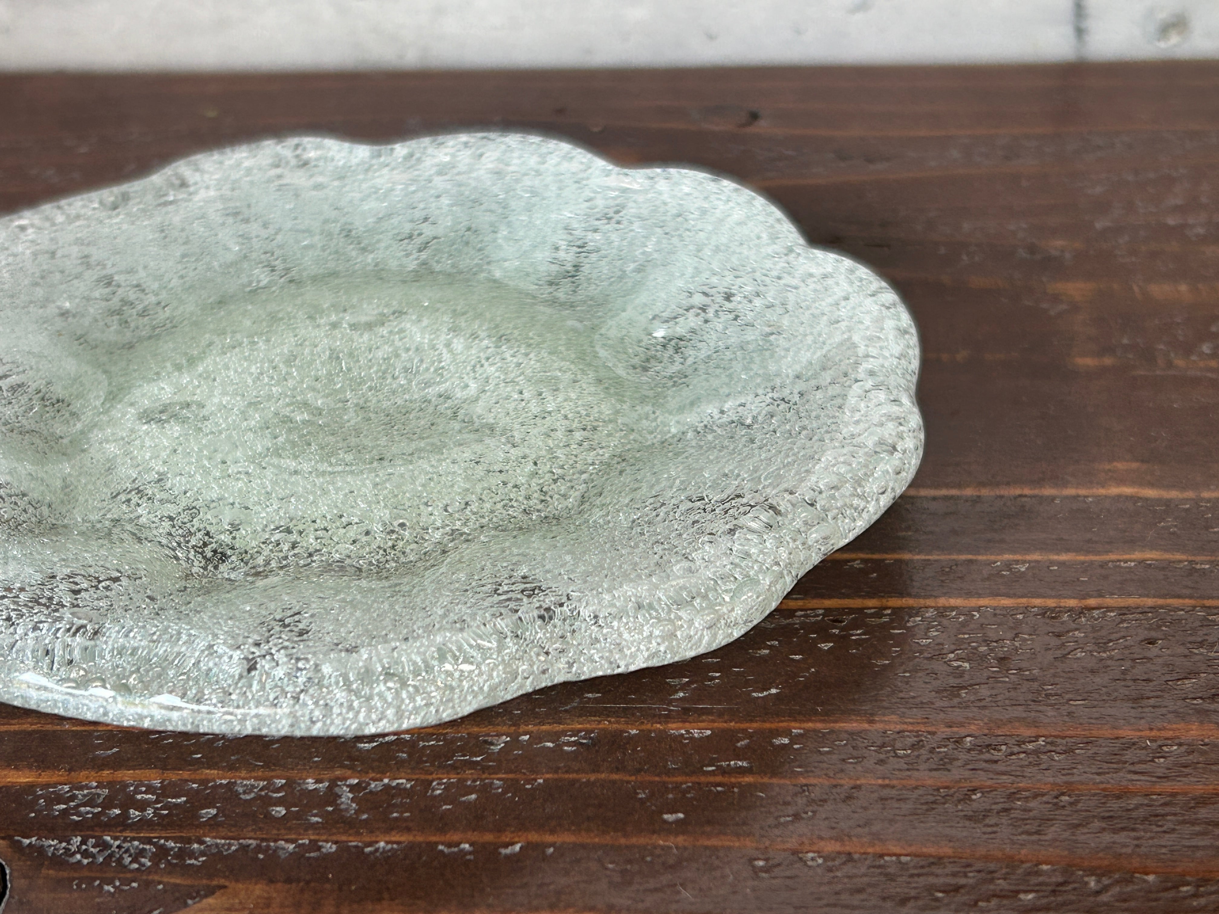 吹きガラス工房 一星 山田奈緒子さん の 泡の入ったお花型菓子皿です