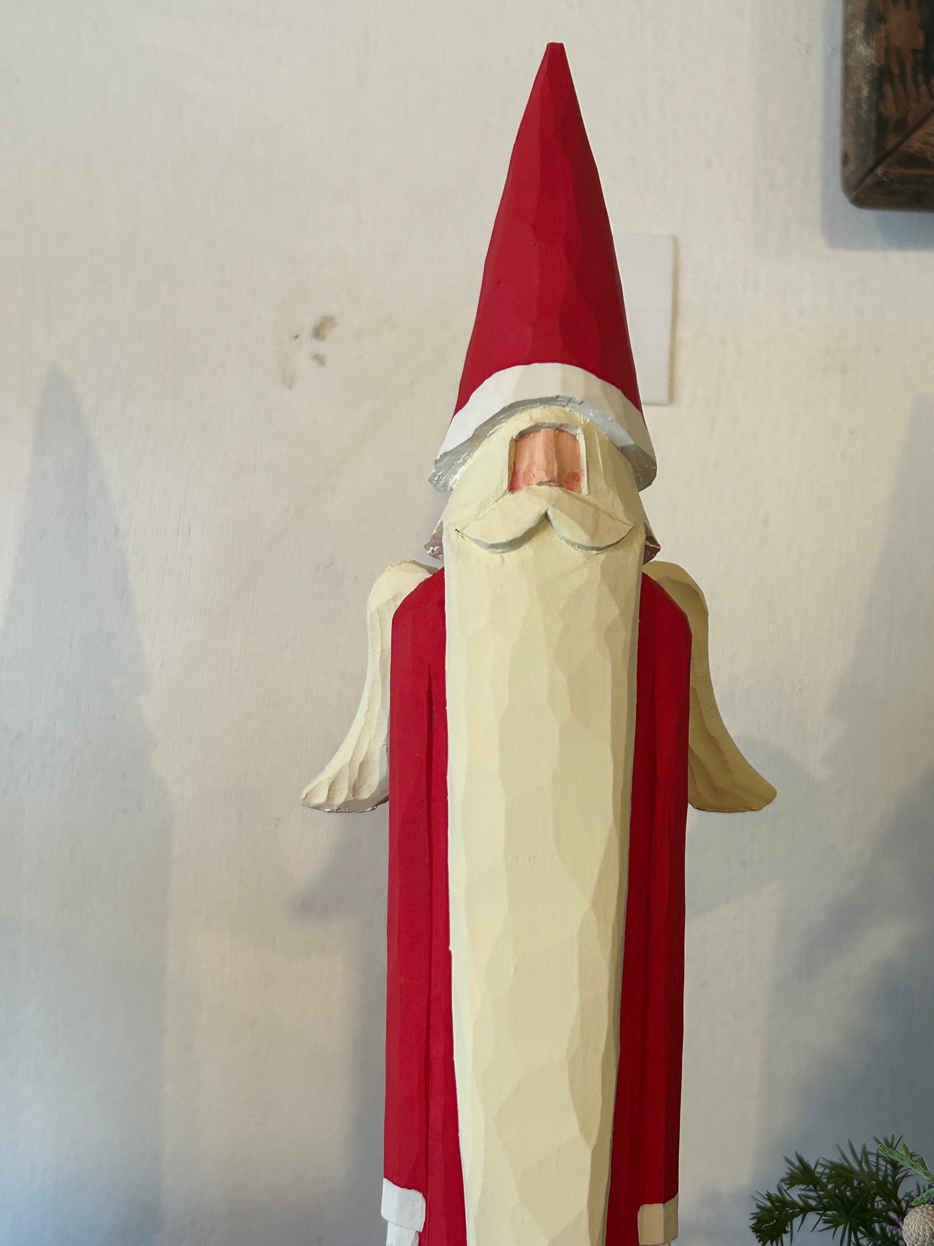 サンタは緑の土台にくっついて立っています。(土台サイズ:約8.5×8.5×h2.8cm)